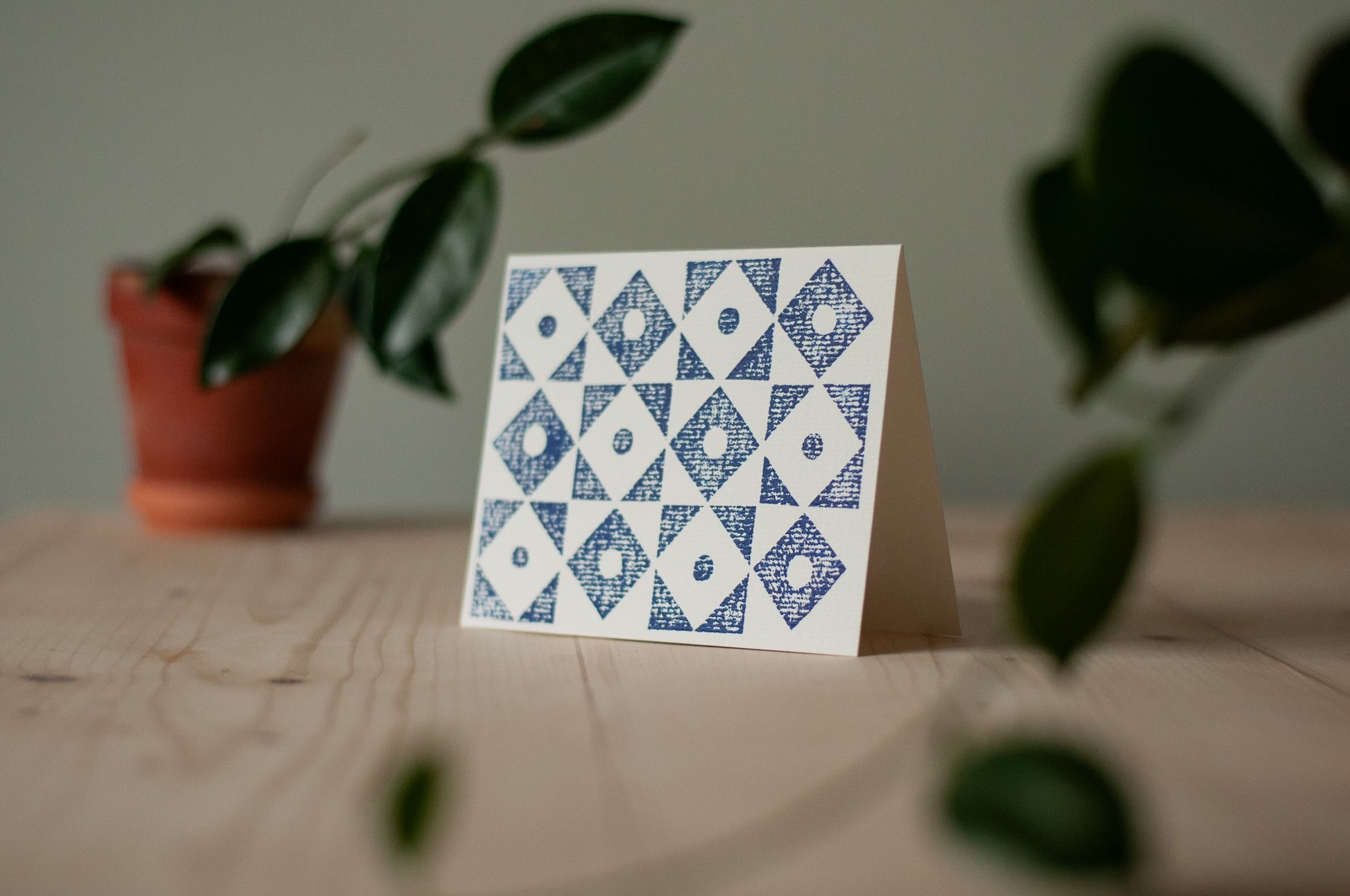 "Nan's Mittens" but in lino print. Individually hand printed with safewash ink on cotton paper.